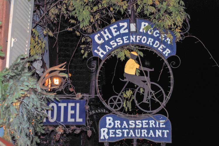 Albert Schweitzer selbst ist allerdings noch mit vielen Fotos etc. im Ortsbild präsent. Und noch einen berühmten Sohn des Ortes gibt es, den zumindest die älteren Radsportfans kennen könnten. Er hat zwar kein eigenes Museum, aber er lebt fort in seinem Hotel-Restaurant Hassenforder. Wer dort einkehrt, und sei es nur auf ein kleines Bier oder einen Muscat, der spürt immer noch die große Radsportvergangenheit in diesem Haus. Roger Hassenforder fuhr von 1953 bis 1959 neun mal die Tour de France, trug 1953 an 4 Tagen das gelbe Trikot und hat 9 Etappen gewonnen. Bei seiner einzigen Tour, die er beendete, wurde er immerhin 50. Noch häufiger war er allerdings verlobt: 14 mal. Noch mit knapp 80 war ein großer Charmeur.