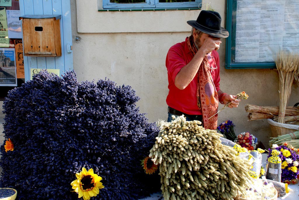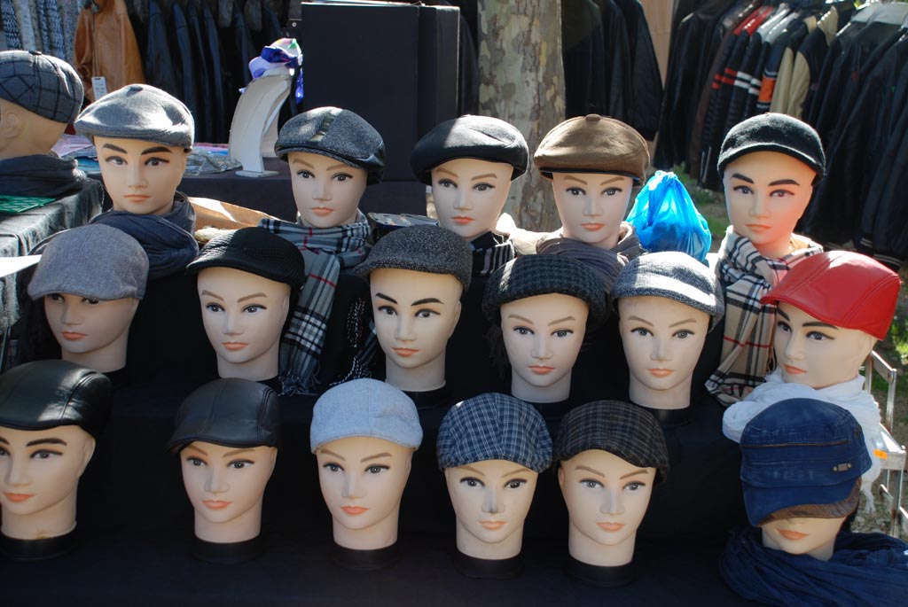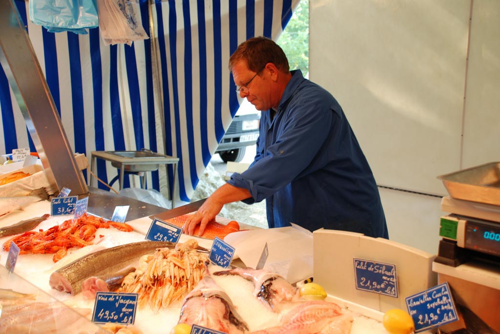 Markt mit frischem FischMarkt & Lavendelsträuße Markt Hüte & MützenMarkt Schuhe