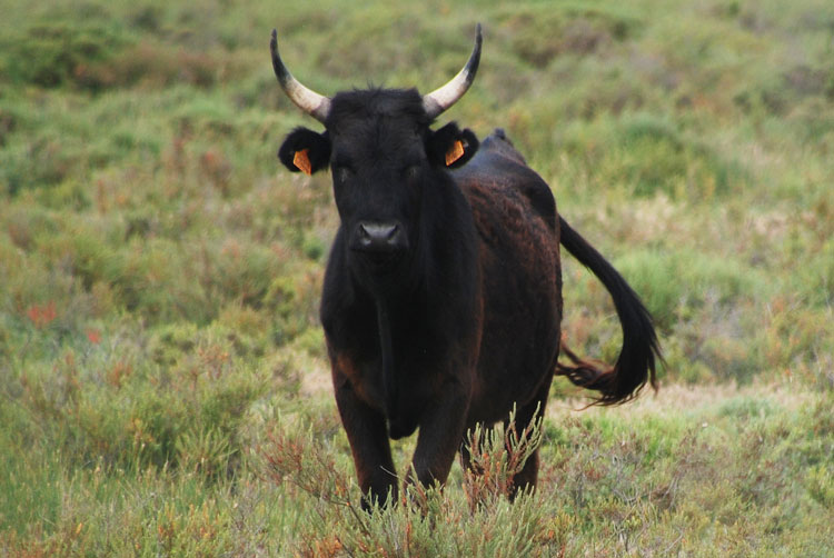 Die Stiere der Camargue sind etwas kleiner als die spanischen Kampfstiere und die Hörner sind auffällig nach oben gebogen. Sie werden des Fleisches wegen gezüchtet, spielen aber bei den Stierkämpfen der Camargue ein wichtige Rolle. anders als in der spanischen Version werden die Stiere jedoch dabei nicht getötet, Ziel der "Course camarguaise" ist vielmehr, Trophäen, die an Stirn und Hörnern der Stiere befestigt sind, zu ergattern.