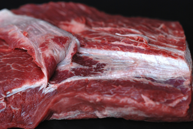 Viele werden jetzt mit dieser zweifelnd zucken und wenn man in Kochbücher schaut, dann wird als klassisches Gericht für dieses Teil des Rinds ein (Sauer-)braten genannt. Dies hat seinen Grund in einer relativ dicken Sehne, die quer durch das Schulterstück verläuft. Enfernt man die, dann bekommt man in der Tat 2 sehr schöne Fleischstücke, die gegrillt oder gebraten mit vielen anderen Steaks nicht nur mithalten, sondern was Geschmack und Textur betrifft sogar besser abschneiden. Und so geht's:
