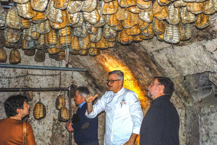 Joachim Kaiser von Meyer's Keller in Nördlingen war von diesem Schinken so angetan, dass er inzwischen einen hervorragenden "Rieser Culatello Riserva" in den alten Bierlagerkellern seines Restaurants produziert und natürlich auch auf der Karte hat. Auch er verwendet dafür das Fleisch einer besonderen Rasse - dem Schwäbisch-Hällischen Landschwein. Die sprachliche Mischung von italienisch und deutsch, rührt dabei daher, dass eine wörtliche Übersetzung des Wortes "Culatello" zwar möglich, aber irgendwie unpassend schien: "Ärschchen". Ansonsten ist der Herstellungsprozess jedoch sehr ähnlich, mit der Besonderheit, dass Schinken nicht 12-14 Monate, sondern 30 Monate reift und dies in den alten Rundbogenkellern, wo früher das Bier lagerte - kühl und feucht. Dort hat der Rieser Culatello ideale Reifebedingungen.  Mehr dazu finden Sie im Beitrag  Mittelalter und Riesenmeteoriten.