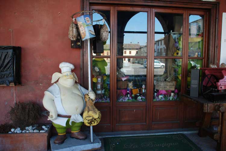 "Culatello" ist ein besonderer luftgetrockneter Schinken aus einigen wenigen Dörfern in der Umgebung von Zibello (direkt am Po zwischen Parma und Cremona) mit der eigenen DOP "Culatello di Zibello" - hergestellt aus dem Fleisch von 2 besonderen Schweinerassen.