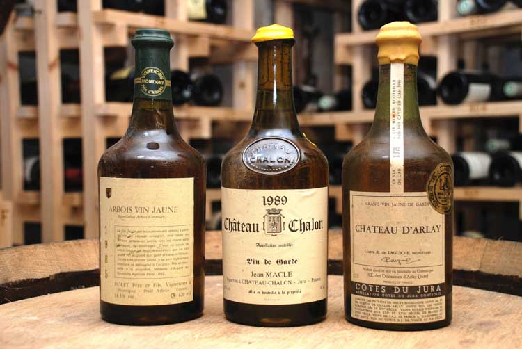 Diese Weine sind etwas ganz Besonderes, aber teuer und auch nicht leicht zu bekommen. Dies beginnt bei der Rebsorte und der Weinbereitung und endet bei der Flaschenform >>>>mehr dazu. Wer keinen Gelben Wein hat, kann dazu sehr gut einen Wein aus der Savagnintraube trinken oder einen trockenen Traminer (so er noch welche findet, z.B. in Württemberg). Es passt aber auch ein Fino Sherry.