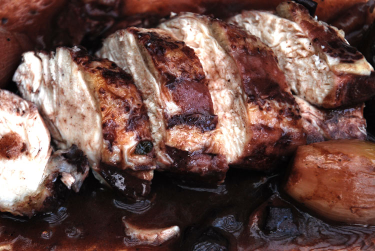 Eines der klassischen Hühnergerichte Frankreichs. In der luxuriösen Variante als "Coq au Chambertin", heute im Hinblick Hinblick auf die Preise des Chambertin aber  eher unangebracht*. Eine Flasche fruchtiger Côtes du Rhône geht sehr gut und schön ist es,