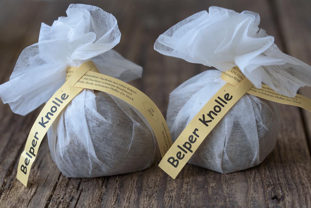 Belp ist ein Vorort von Bern und dort hat der "Chäs-Glauser" seinen Sitz. Eines seiner Produkte ist ein Frischkäse in Kugelform, versetzt mit etwas Schweizer Knoblauch und Kristallsalz, sowie außen mit Pfeffer bestäubt - die ursprüngliche Belper Knolle. Dieser Name steht heute aber mehr für die gereifte, getrocknete Form, über deren Entstehung es eine Reihe von Legenden gibt: