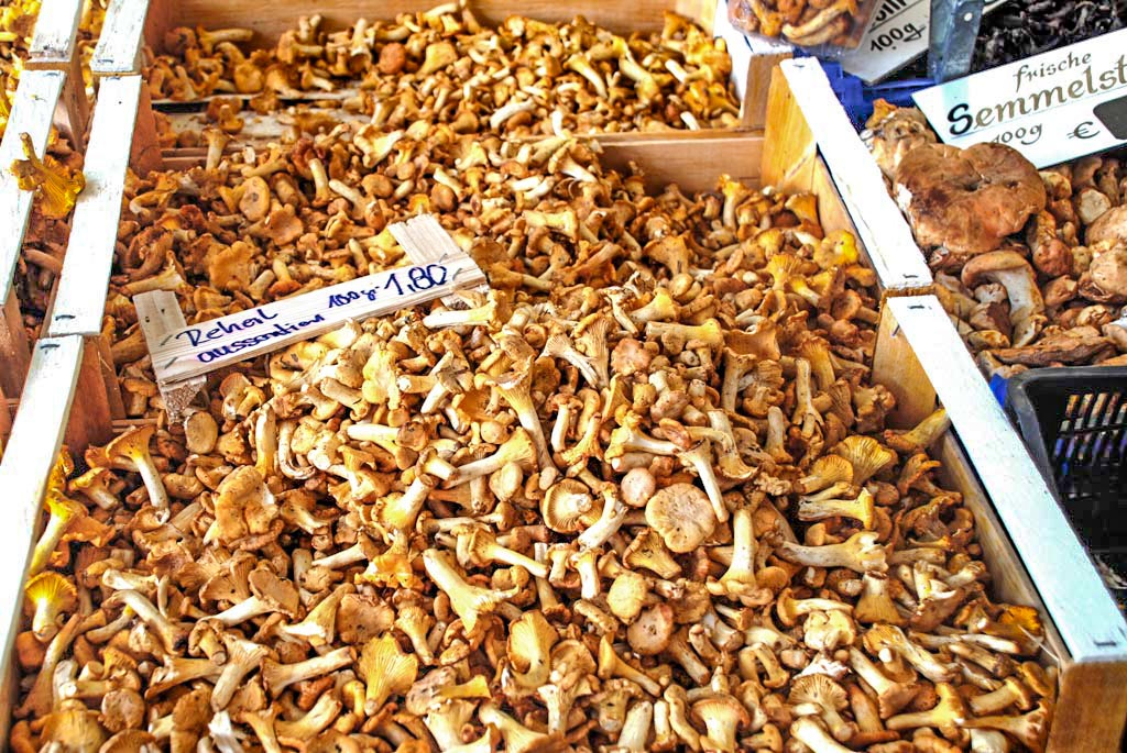 Im August füllen sich die Pilzstände auf dem Viktualienmarkt in München mit immer mehr Pilzen. Sowohl die Mengen, als auch die Sortenvielfalt ist dann im beginnenden September immer wieder spannend.