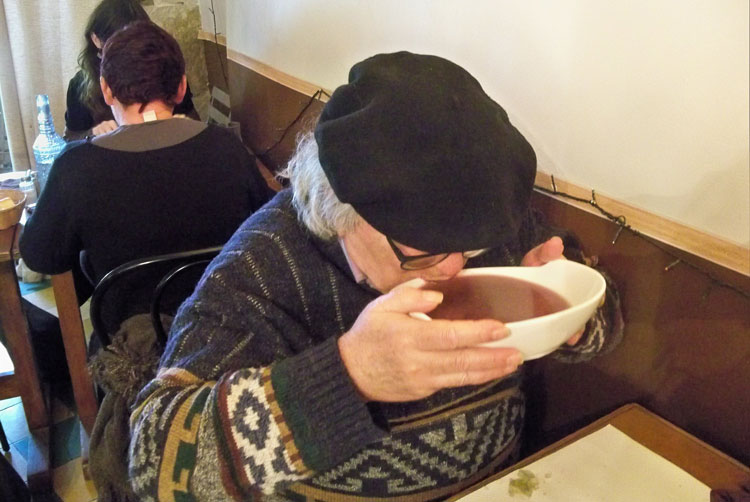 "Faire Chabrot" ist ein alter Brauch in Südfrankreich, der heute nur noch in einigen ländlichen Gegenden praktiziert wird. Dabei wird Wein zu einem Rest Suppe in den Teller gegossen und das Gemisch dann aus dem Teller getrunken.