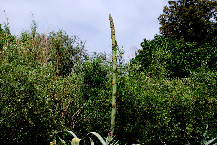 Eigentlich als Witz gedacht, hat mich ein Blick in Wikipedia belehrt: Die verblüffende Ähnlichkeit mit grünem Spargel ist nicht zufällig, sondern die Agave zählt zur Familie der Spargelgewächse