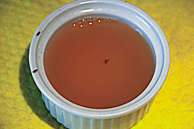 Noch ein Hinweis: Die Qualität der Fallenbestandteile ist nicht entscheidend für den Erfolg. Sie brauchen also keinen hochwertigen frisch gepressten Bio-Orangensaft, keinen Balsamico Methodo Tradizionale und auch keine hochwertige Mosel-Auslese. Dafür sollten Sie alle 2 -3 Tage die Mischung neu ansetzen, wenn es dann überhaupt noch "Kulturfolger" gibt, aber da vertraue ich auf Ihren angeborenen Killer-Instinkt. Alternativ reicht auch, die Falle alle 2-3 Tage mit einigen Tropfen Zitronensaft oder Essig aufzufrischen.