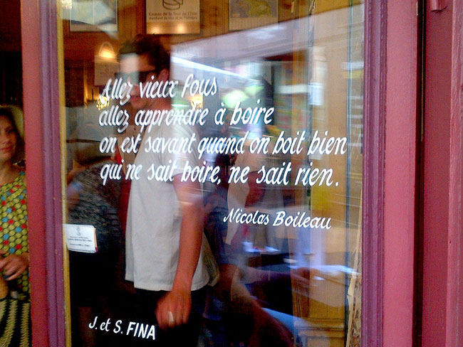 Dieses Zitat ziert einen guten Weinladen mit vorzüglicher Käsetheke in Isle-sur-la-Sorgue. Im "Chez Stéphane" (früher Tour de l'Isle) kann man beides auch vor Ort genießen - ein Highlight nach dem Sonntagsmmarkt.